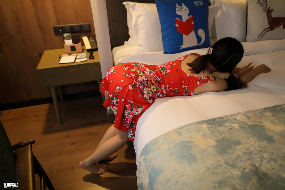 ROSI口罩系列NO.814_红色连衣裙美女酒店床上撩人诱惑写真(2)