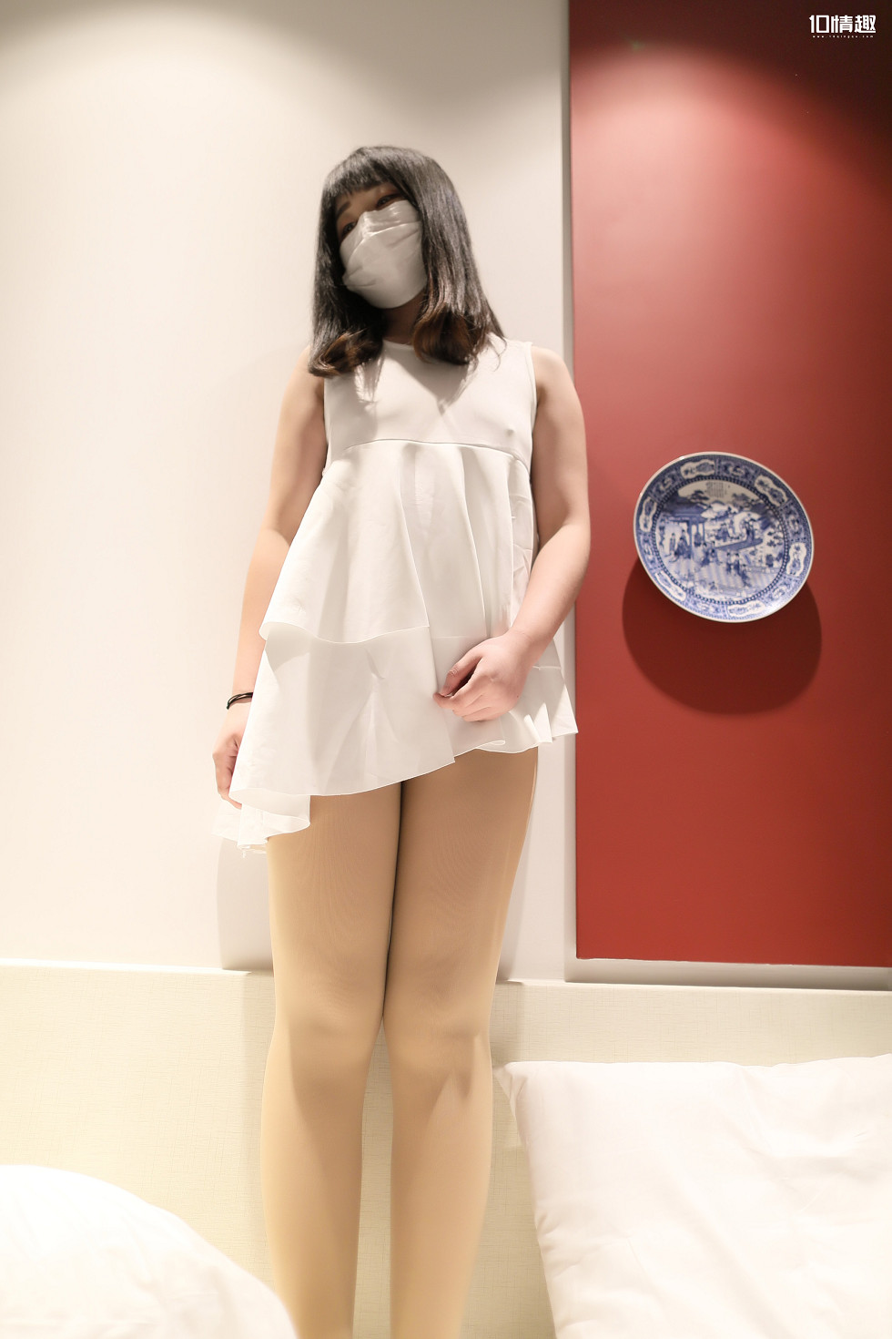 ROSI口罩系列NO.862_白色连衣裙美女无内肉丝裤袜诱惑写真