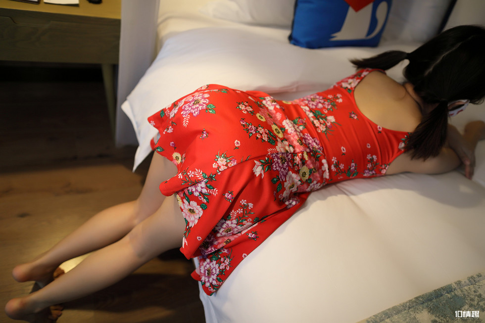 ROSI口罩系列NO.814_红色连衣裙美女酒店床上撩人诱惑写真(2)